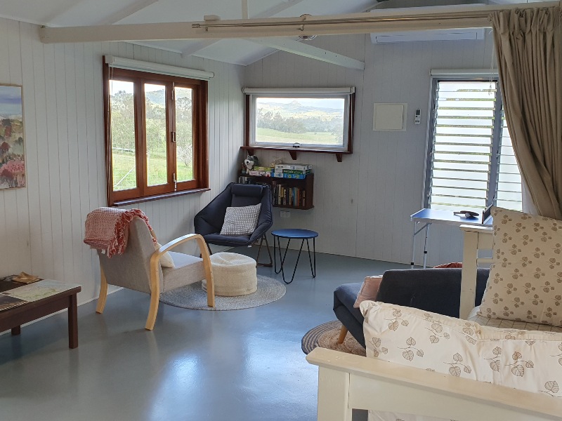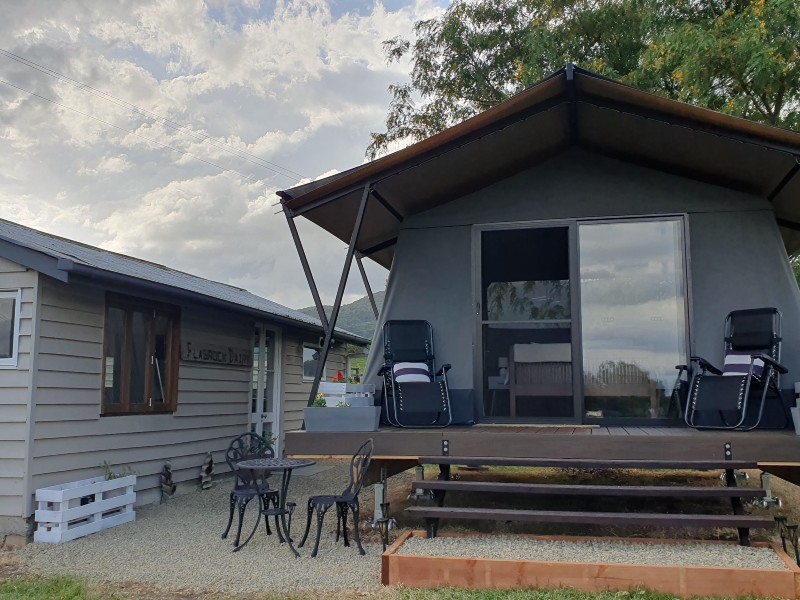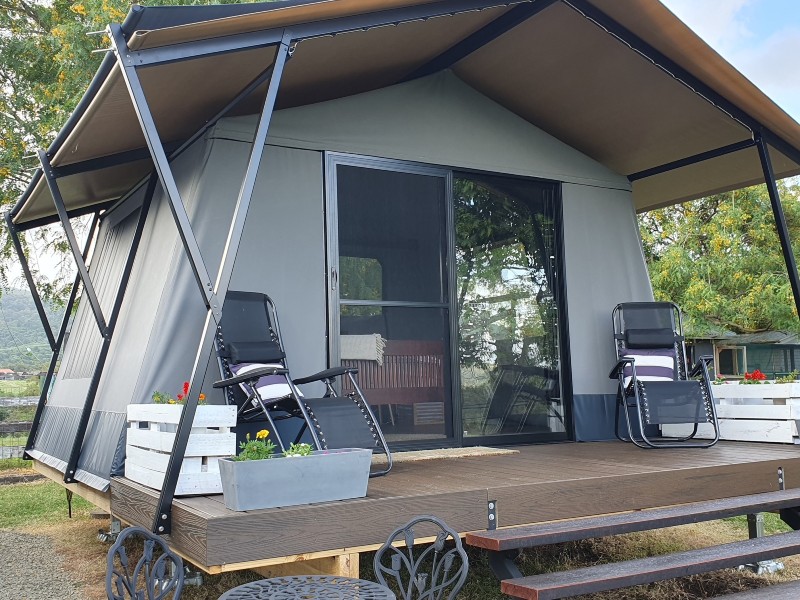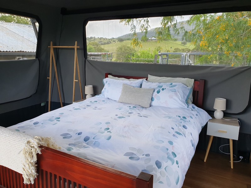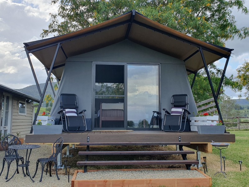 The Eco tent has a Queen bed and can sleep a maximum of 2 people. The Eco tent is not air-conditioned but does contain a fan. All 4 sides of the tent does open up to ensure you catch the breezes. The tent is adequately fly-screened and secure. The adjoining cottage is air-conditioned and is a recreational space, games room and library. You will have exclusive access to the cottage, outdoor dining area, fire pit and BBQ facilities during your stay. You will also have exclusive access to the facilities down by the creek with guaranteed peace and privacy during your stay.