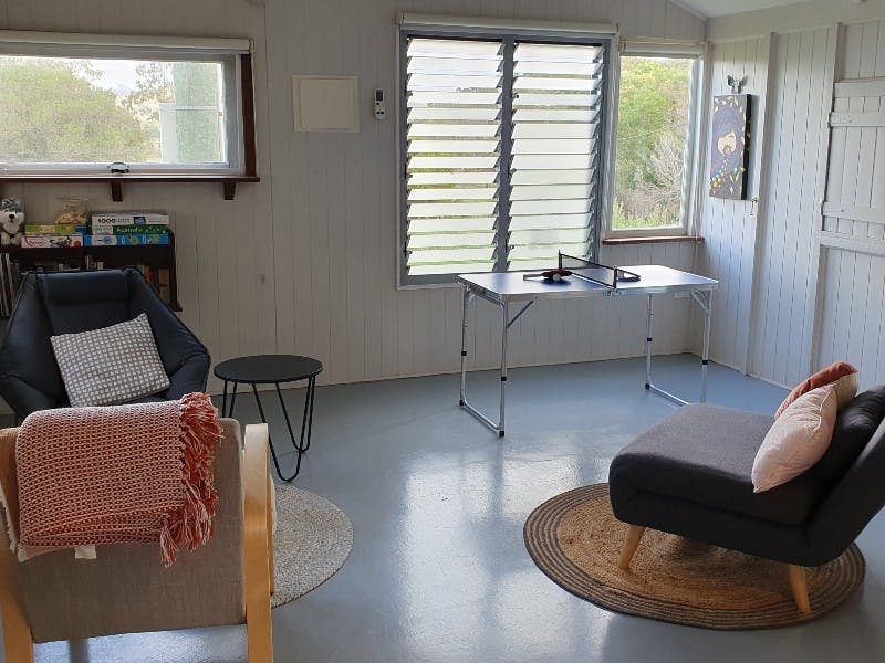 The Eco tent has a Queen bed and can sleep a maximum of 2 people. The Eco tent is not air-conditioned but does contain a fan. All 4 sides of the tent does open up to ensure you catch the breezes. The tent is adequately fly-screened and secure. The adjoining cottage is air-conditioned and is a recreational space, games room and library. You will have exclusive access to the cottage, outdoor dining area, fire pit and BBQ facilities during your stay. You will also have exclusive access to the facilities down by the creek with guaranteed peace and privacy during your stay.